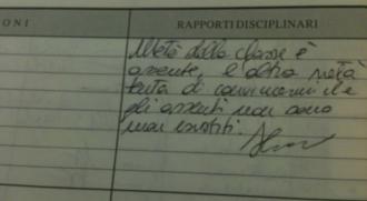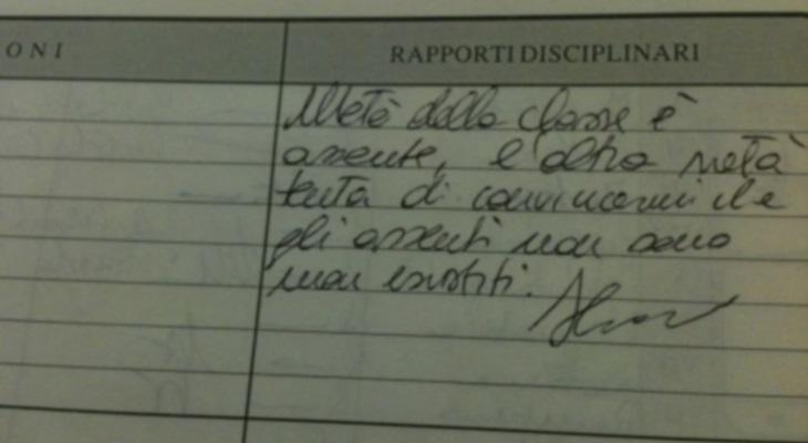 - “Invito i colleghi docenti della 3^F a fare una riflessione sulla condotta dei propri alunni. La mia è la seguente: Una classe allo sbando!”